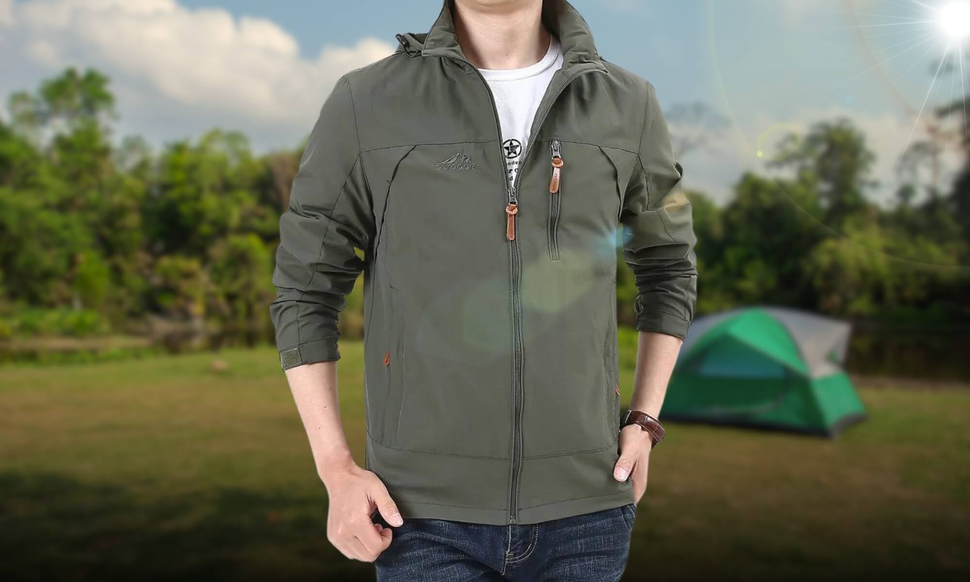 Made from comfortable polyamide , our Outdoor Jacket offers protection against tears and scratches . So you can enjoy your adventures without worries, knowing that you are protected against nature's obstacles.
